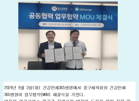중구체육회 건강만세 365병원 업무협약(MOU) 체결식(2024.09.03)